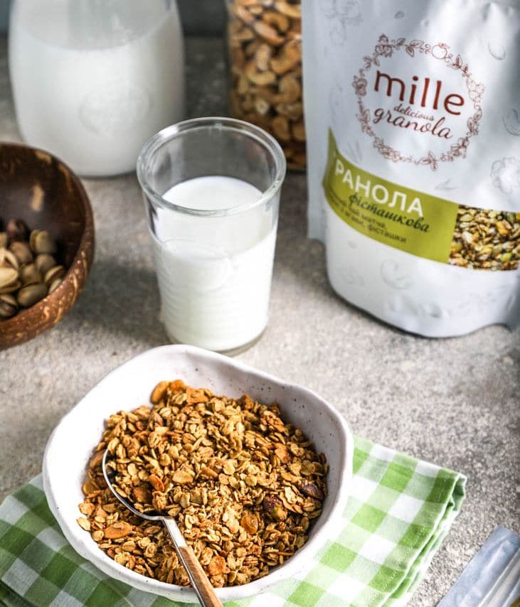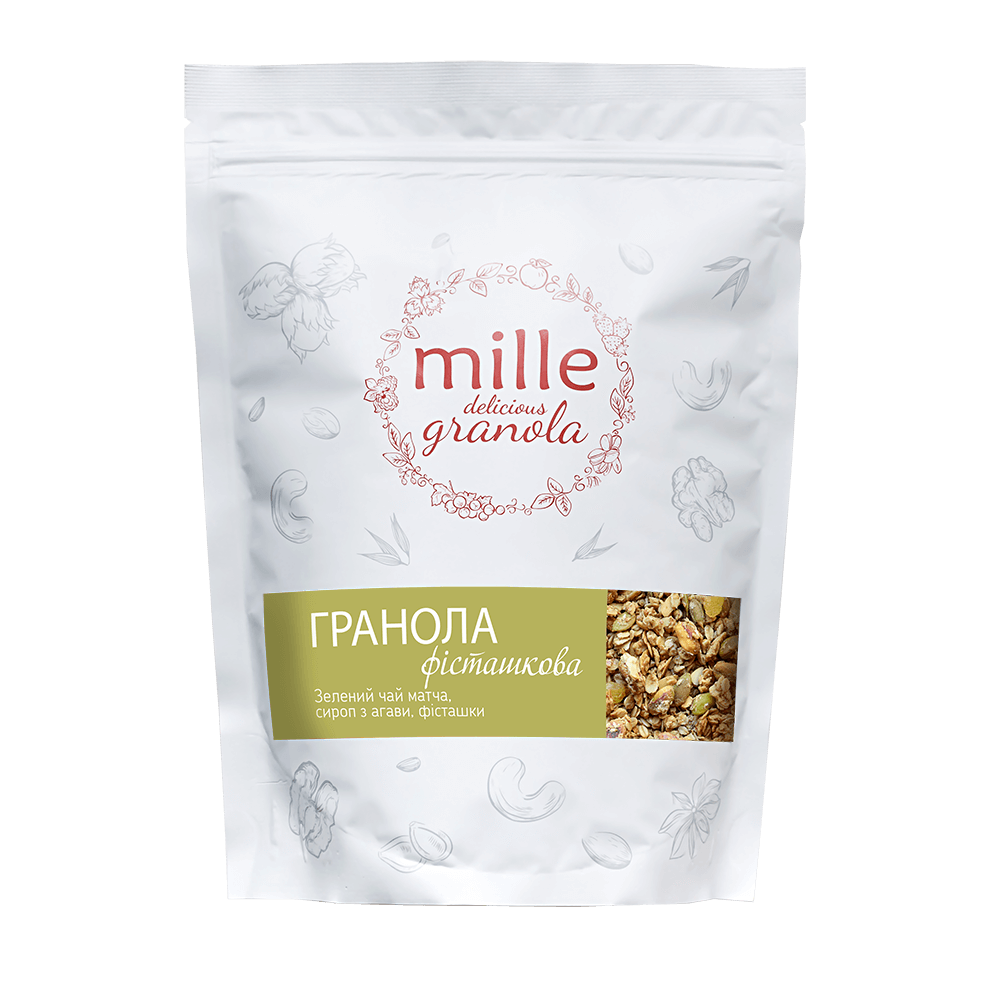 Енергетично насичена, збагачена рідкісними мікроелементами зеленого чаю матча, хрумка та поживна гранола з фісташками. Її унікальний смак і корисний склад зарядять вітамінами та хорошим настроєм кожен ранок!