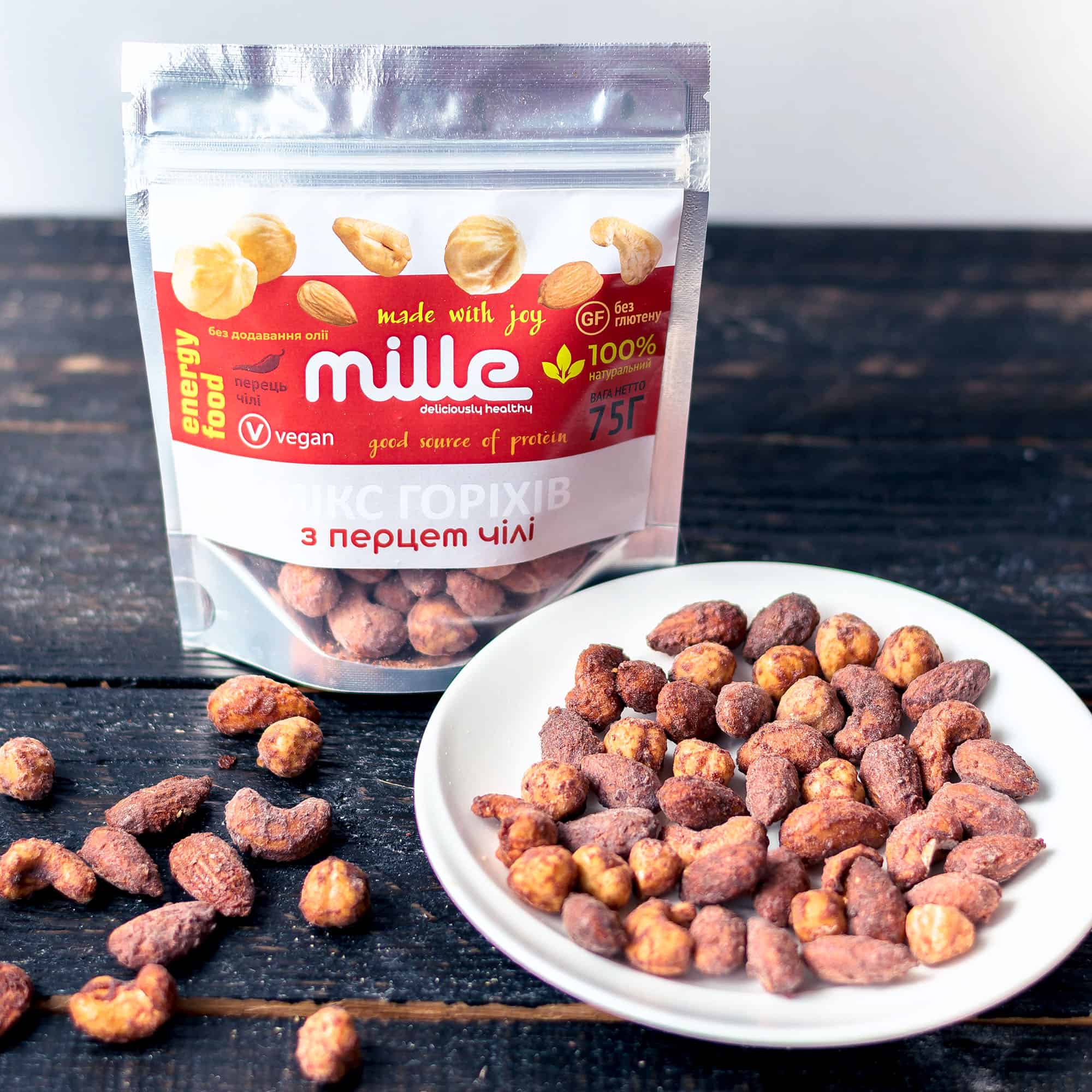 Будьте першим, хто залишив відгук на “Мікс горіхів з перцем чілі, 75 г”