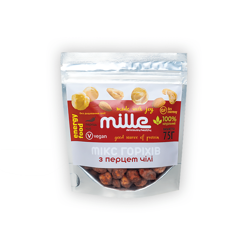 Злегка підсмажені горішки з ніжною гостринкою перцю чілі додадуть яскравості у будь –який час.  Горіховий мікс Чілі Пеппер приємно доповнить ваш день пікантним смаком та неповторним відчуттям. Також стане неперевершеною прикрасою для будь –якого столу та ідеальним доповненням до гучних вечірок.