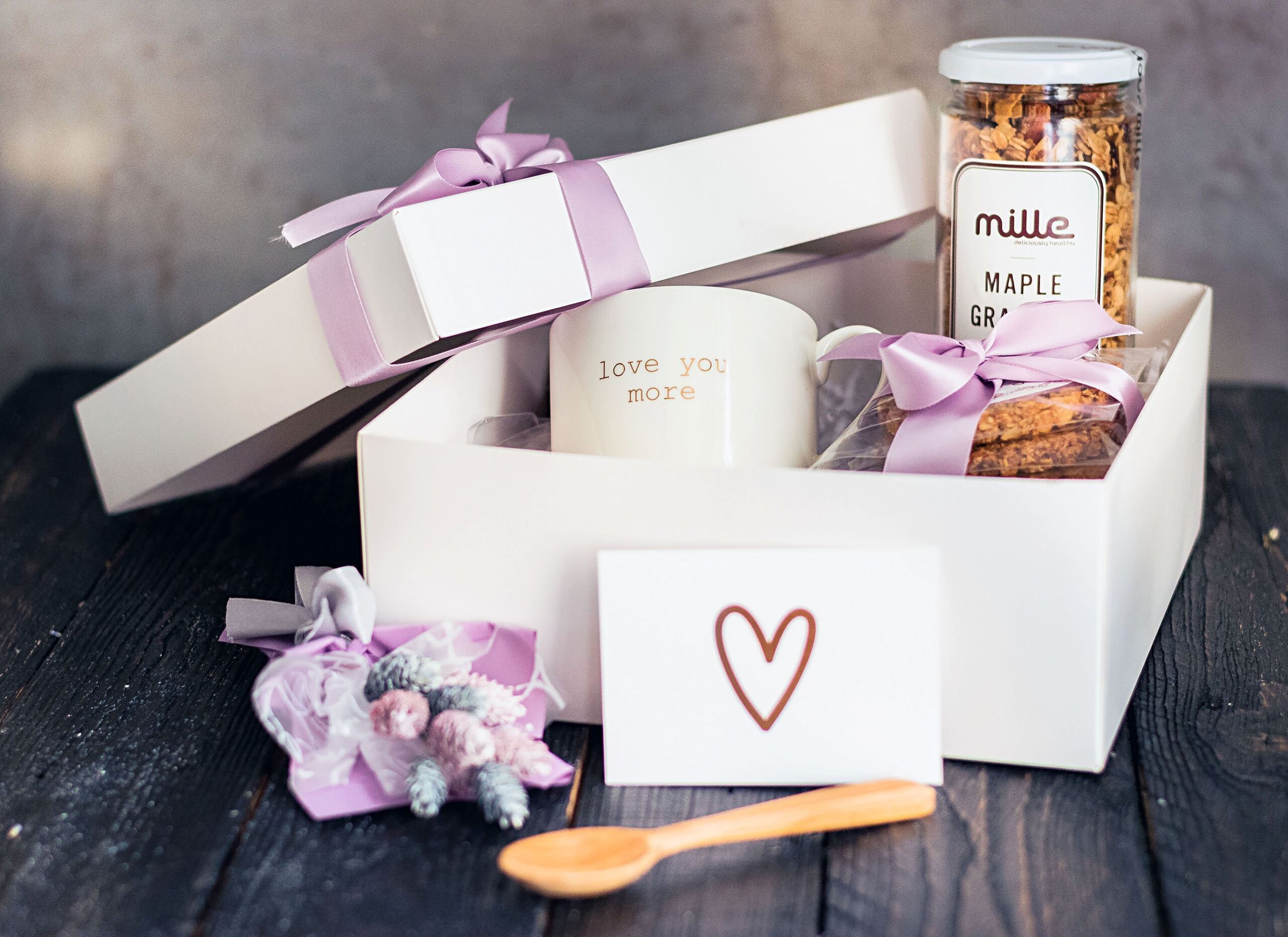 Подарунковий набір "Love You" - в ньому стільки ніжності,  смаку, неповторної краси  і  гармонії.   Всі найніжніші почуття в одному подарунку, що створено для самих рідних і коханих людей! До набору входить: - Одна з 5 видів граноли (горіхова, кленова, шоколадна, фісташкова, імбирна) на вибір. Баночка 250 гр. - 1 шт. - Печиво "З граноли" - 2 шт. - Печиво "Кокосове" - 2 шт. - Печиво "Шоколадне" - 2 шт. - Серветка до столу з бавовни. - Керамічна чашка "Love You" / "Love You More" - Mille Горішки (100 гр.)  Один з чотирьох смаків міксу горішків (з корицею, з гімалайською сіллю, з чілі перцем або з кленовим сиропом) на вибір. - Листівка з сердечком. - Свічка - Букет квітів   Limited Edition. Подарунки створено у обмеженій кількості.